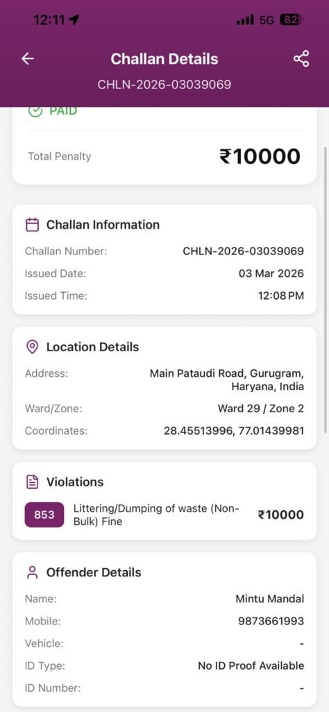 गुरुग्राम, 3 मार्च: शहर में बायोमेडिकल वेस्ट के अनुचित निस्तारण को लेकर प्रशासन ने सख्त रुख अपनाया है। नगर निगम गुरुग्राम ने पटौदी रोड स्थित देवराज क्लीनिक पर 10,000 रुपये का जुर्माना लगाते हुए मौके पर ही वसूली की कार्रवाई की। निगम को सार्वजनिक स्थान पर मेडिकल वेस्ट फेंके जाने की शिकायत मिली थी। इसके बाद टीम ने मौके पर पहुंचकर निरीक्षण किया। जांच के दौरान नियमों के उल्लंघन की पुष्टि होने पर तुरंत कार्रवाई की गई।