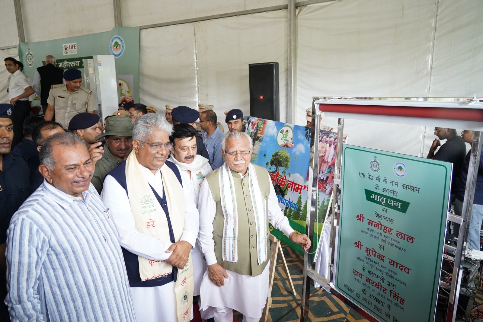 Union Ministers Manohar Lal and Bhupender Yadav inspects proposed site near Saketpur village