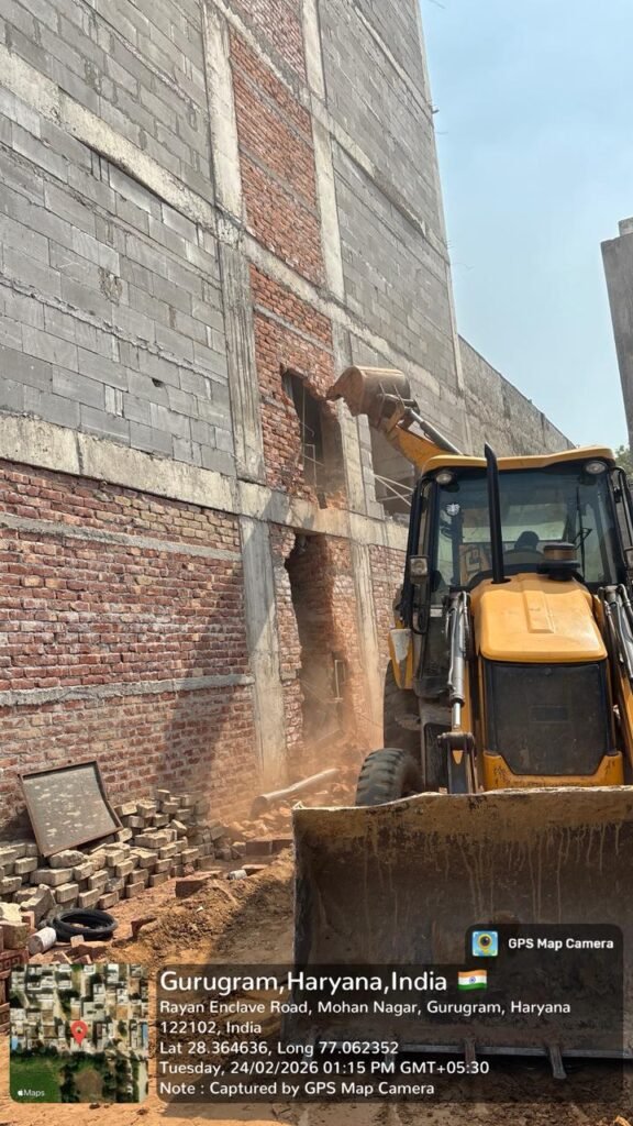 गुरुग्राम, 25 फरवरी। नगर निगम गुरुग्राम द्वारा भोंडसी क्षेत्र में अवैध निर्माण के खिलाफ विशेष ध्वस्तीकरण अभियान चलाया गया। निर्धारित कार्यक्रम के तहत की गई इस कार्रवाई में कई अवैध ढांचों को हटाया गया और कुछ निर्माणाधीन भवनों को सील किया गया।यह अभियान संयुक्त आयुक्त रविंद्र मलिक के निर्देशों पर सहायक अभियंता आर.के. मोंगिया की अगुवाई में जोन-4 इन्फोर्समेंट टीम द्वारा संचालित किया गया।